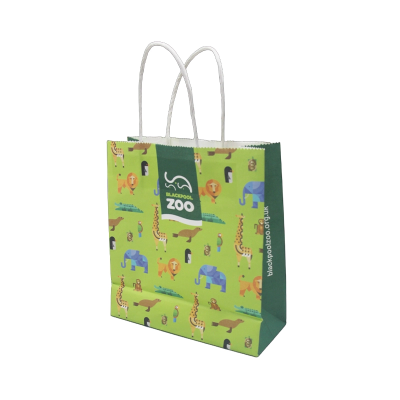 Ez a hordozható ajándék papírtáska üde zöld alapszínnel rendelkezik, mindenhol szórakoztató rajzfilmes állatmintákkal. Olyan klasszikus állatkerti képeket tartalmaz, mint a zsiráfok, oroszlánok, elefántok és pingvinek. A központi területet a "BLACKPOOL ZOO" márkalogó szabja meg, élénk és játékos légkört teremtve, miközben megemlékezés érzetét is hordozza.