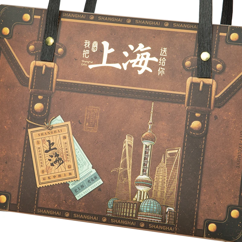 A doboz felületére exkluzív szöveget nyomtat, például "Sanghajt neked adom", valamint retro elemeket, például vonatjegyeket és régi címkéket. Megvannak a maga városi kulturális adottságai. Ez nem csak csomagolás, hanem gyűjthető városi szuvenír is. Exkluzív díszdobozként alkalmas helyi specialitások és kulturális termékek számára Sanghajban, közvetítve a regionális kultúrát.